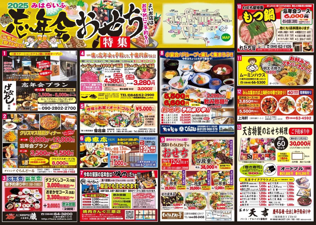 飲食店や小売店、中古車店などの旬な情報を、地元三原の方々に向けてご紹介しています。